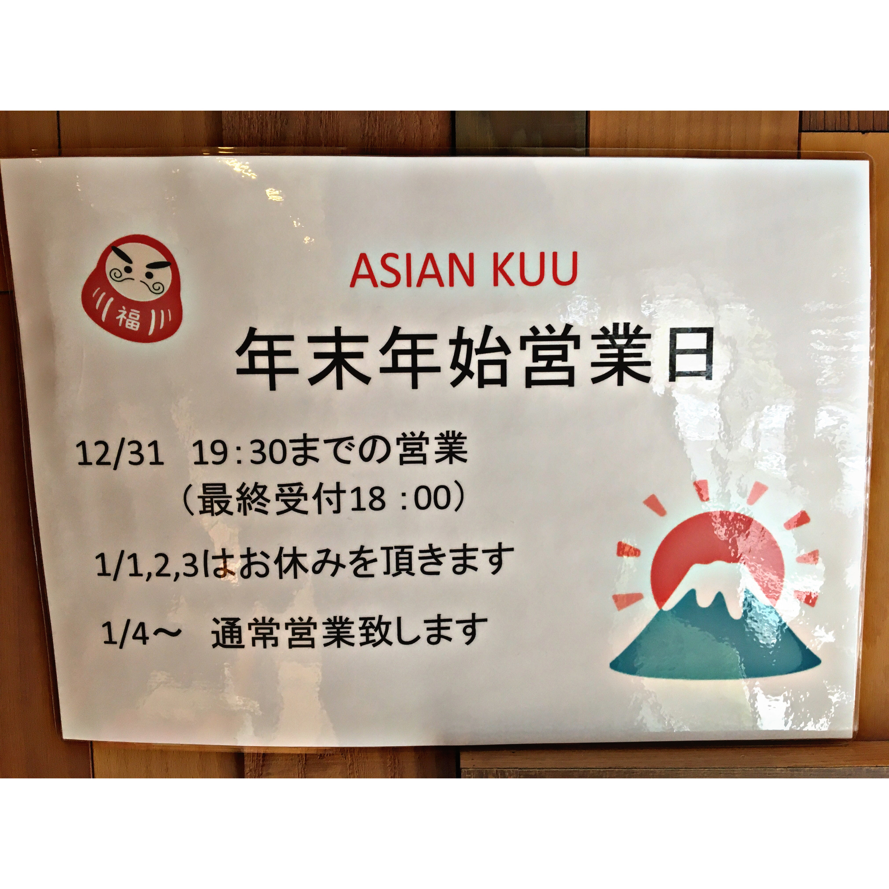 31日のみ最終受付18:00の19:30閉店となっております😌